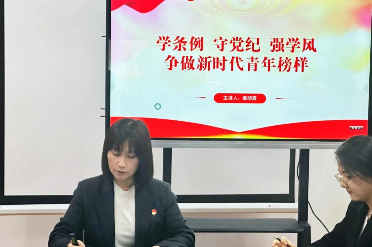 学院党总支书记綦明霞以“学条例,守党纪,强学风,争做新时代青年榜样”为主题,围绕《中国共产党纪律处分条例》的背景和重要意义、《中国共产党纪律处分条例》主要内容的解读及青年学生党员如何践行党的纪律和作风建设三方面展开,结合校内外案例,以案为鉴为学员们讲授了《条例》的精神实质和核心要求。她指出,青年学生党员要以党纪学习教育为契机,将党纪学习教育与深化能力作风建设相结合,将理论知识与实际行动相联系,做到内化于心、外化于行,号召学生党员要始终做到忠诚干净担当,要立志做有理想、敢担当、能吃苦、肯奋斗的新时代好青年。