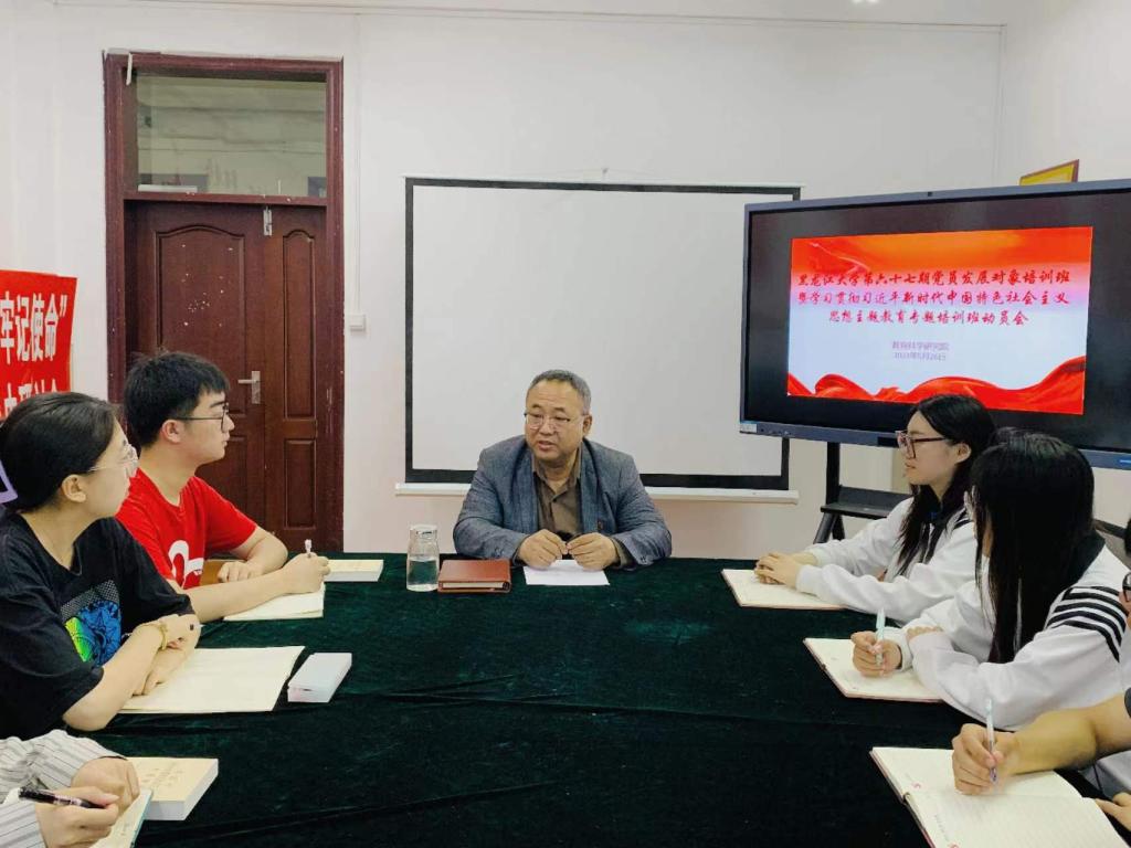 刘锐结合《关于举办黑龙江大学第六十七期党员发展培训班暨学习贯彻习近平新时代中国特色社会主义思想主题教育专题培训班的通知》,将本次培训的时间安排、内容形式、管理考核以及具体要求做出了详细的说明,鼓励同学们积极参与专题教学、交流研讨、情景研学等各个环节,高标准、严要求对待本次培训,高度重视结业考试,以优异的成绩和良好的表现圆满完成各项学习任务。