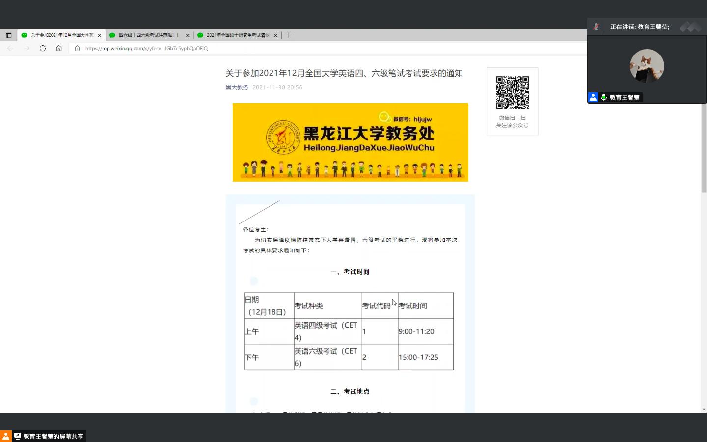 会议伊始,辅导员老师立足于《黑龙江大学学生管理规定》中黑龙江大学学生纪律处分办法对于即将到来的大学英语四六级考试以及期末考试,结合黑大教务微信公众平台的通知,向同学们讲解了相关考场规定及要点,提前带领同学们熟悉考试,凸显了对学生的人文关怀。同时以国家法律中关于国家考试的相关法律条例为依据强调了考风考纪问题,使同学们知晓遵守考场纪律的严肃性、重要性。