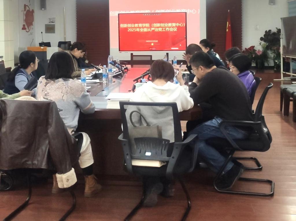 会上,綦明霞首先传达了学校2025年全面从严治党工作会议精神,强调全面从严治党永远在路上,要深入学习贯彻习近平总书记在二十届中央纪委四次全会上的讲话精神,发扬彻底的自我革命精神,一以贯之推进学院全面从严治党、党风廉政建设和反腐败斗争。其次,对2025年学院全面从严治党工作进行部署并提出要求。一要坚持把党的政治建设摆在首位,严明政治纪律和政治规矩,加强党对学院工作的全面领导,落实管党治党政治责任。二要构建分层理论学习体系,及时跟进学习宣传贯彻习近平总书记系列重要讲话重要指示批示精神,扎实推进党的创新理论成果入脑、入耳、入心。三要进一步夯实学院意识形态五大工作体系,推动意识形态工作提质增效。四要推动学院“双创”典型建设,开展基层党建工作品牌创建,进一步完善党员教育管理、作用发挥机制。五要强化师德师风引领,加强教风建设,不断完善教学管理与监督。六要持续加强纪律建设,强化政治监督与风险防控,推动各类监督向基层延伸。