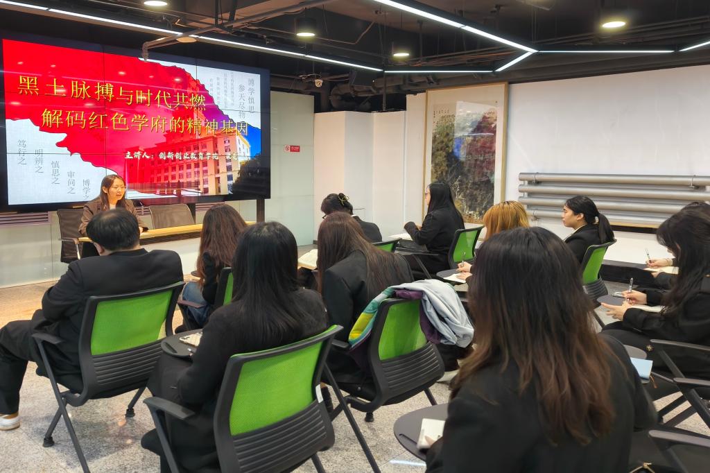 学院团委副书记梁曼以《黑土脉搏与时代共燃:解码红色学府的精神基因》为题,围绕“传承·薪火相传中的精神密码”“担当·奋进征程中的青年答卷”“引领·时代浪潮中的先锋力量”三方面,结合校史红色基因、青年实践案例等展开讲解。希望学生党员积极响应国家号召,投身创新创业,以踔厉奋发的精神风貌、真抓实干的务实作风,赓续黑龙江大学红色血脉,投身东北全面振兴发展大局,在龙江振兴的火热实践中挥洒青春汗水,在时代发展的壮阔征程中书写属于青年一代的奋斗华章。