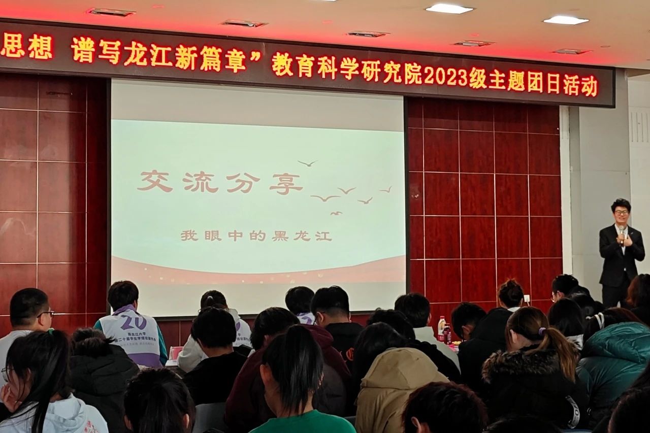 为深入学习贯彻党的二十大精神和团十九大精神,牢牢把握习近平总书记在黑龙江视察时的重要讲话重要指示精神,团结引领广大团员青年坚定跟党走,厚植爱国情怀,弘扬伟大建党精神,教育科学研究院积极响应校团委号召,于2023年12月11日10时在大学生活动中心报告厅组织2023级各专业团支部开展“学思践悟新思想 谱写龙江新篇章”主题团日活动。教育科学研究院党总支书记綦明霞、党总支副书记屈广宁、校团委宣传调研部副部长童一及各年级辅导员到会并给予指导,新生班主任、2023级全体学生参加活动。