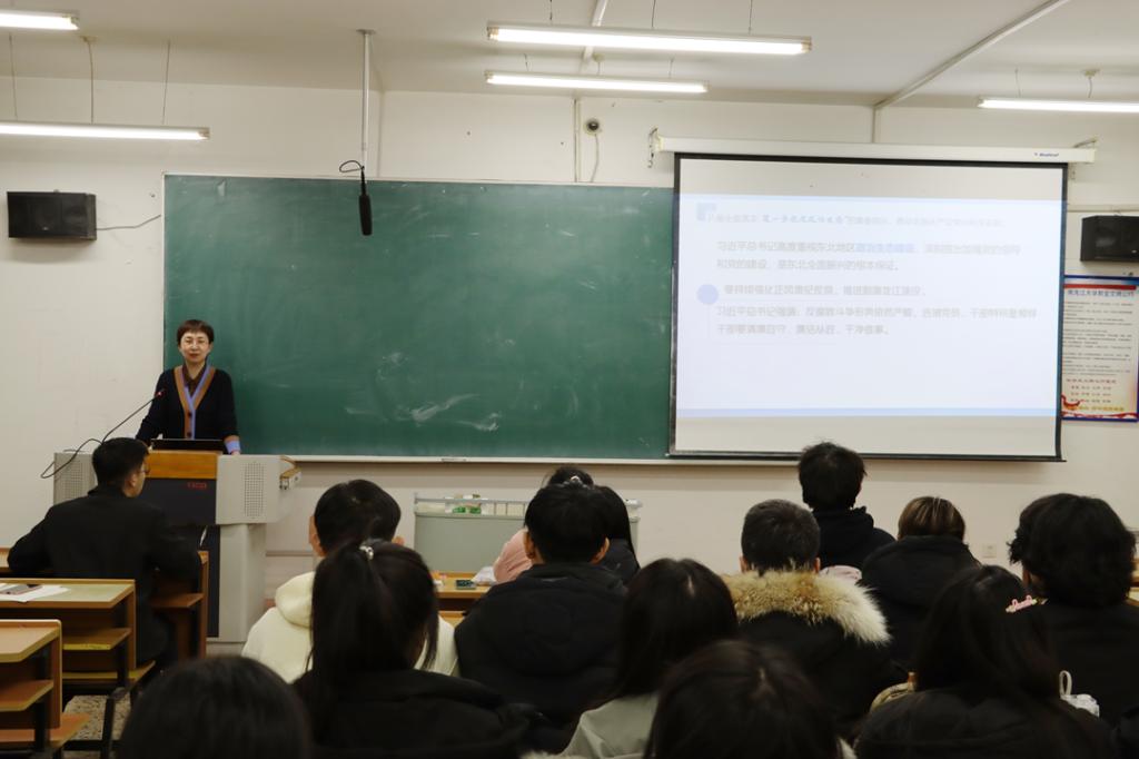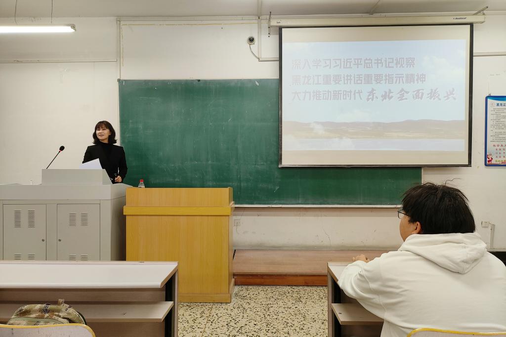 为深入学习贯彻习近平总书记视察我省期间的重要讲话重要指示精神,按照《中共中央、国务院关于加强和改进新形势下高校思想政治工作的意见》、《关于深化新时代学校思想政治理论课改革创新的若干意见》等文件重要指示精神,深入落实《深化新时代黑龙江省学校思想政治理论课创新创优行动方案》等文件要求和学校党委的决策部署,教育科学研究院党总支书记綦明霞、院长王世红分别于12月4日和12月12日为学院2023级学生讲授题为《深入学习习近平总书记视察黑龙江重要讲话重要指示精神,大力推动新时代东北全面振兴》的思想政治专题理论课。