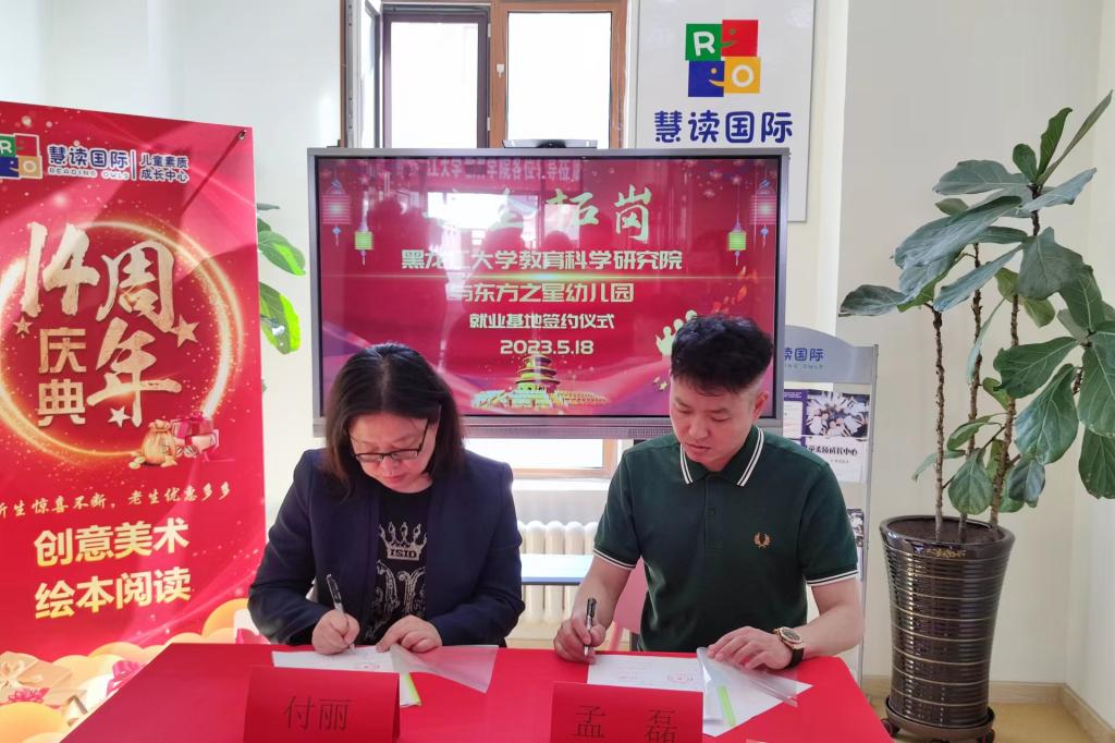为深入学习贯彻党的二十大精神,积极推动学院毕业生高质量就业,2023年5月18日,教育科学研究院党总支书记金鹏、副书记付丽、副院长佟玉英及2023届辅导员闵诗尧赴哈尔滨市东方之星幼儿园和慧读国际儿童素质成长中心开展访企拓岗专项行动。