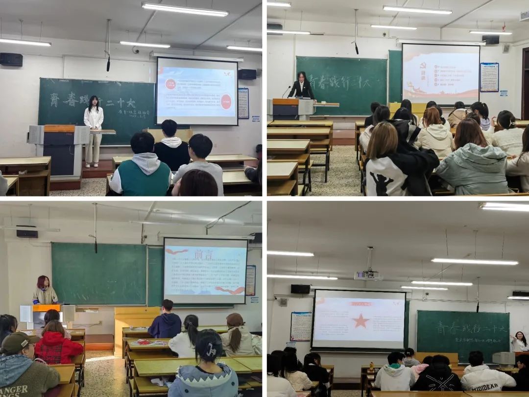 活动伊始,各班团支书带领同学们再次共同学习党的二十大报告,使同学们增进对党的二十大精神的了解,并深刻认识到党的历史使命和责任担当,以及我们作为新时代大学生应具备的品德和能力。更加坚定了同学们为实现中华民族伟大复兴而不懈奋斗的信念。