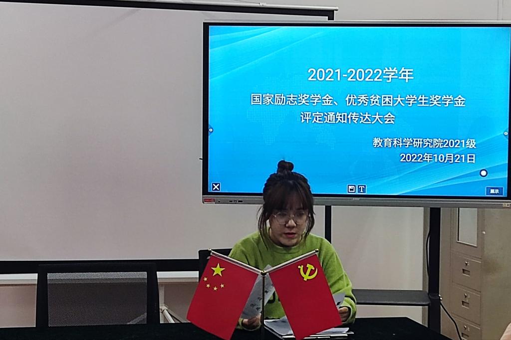 为切实做好学院资助育人工作,保障学生得到有效的资助,根据学生工作部《关于评定2021-2022学年国家励志奖学金的通知》与《关于评定2021-2022学年优秀贫困大学生奖学金的通知》相关要求,教育科学研究院高度重视,成立以院党总支副书记为组长的认定工作领导小组,各年级于2022年10月21日组织召开国家励志奖学金、优秀贫困大学生奖学金评定会议,由2019-2021级辅导员主持,家庭经济困难学生参加会议。