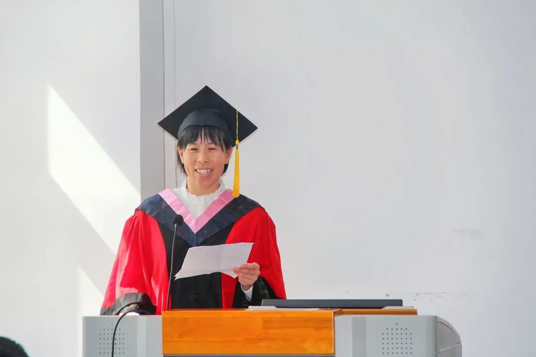 教育科学研究院院长王世红老师代表学院致辞,她表示学习的本质是获取潜藏在知识背后的智慧。经过几年专业学习,同学们不仅掌握了系统专业知识,而且更有智慧、更有思想。善于明辨是非、决断选择,才能选对路、走正路。希望大家继续勤学善思,砺能笃行,睿智谋事,聪慧成事,为实现中华民族伟大复兴贡献智慧和力量。