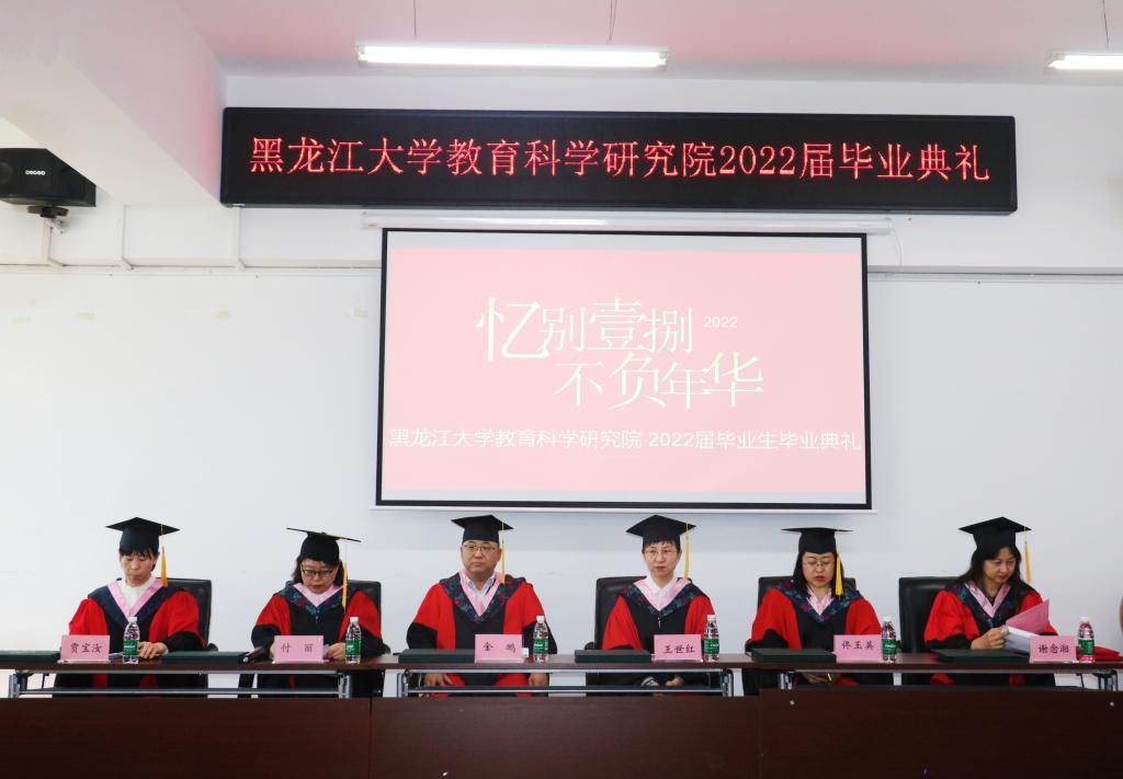 在国歌声中,毕业典礼拉开帷幕。会上,学院党总支书记金鹏老师宣读《教育科学研究院关于拟授予2022届毕业生学士学位的决定》,学院副院长佟玉英老师介绍《黑龙江大学教育科学研究院2022届毕业生考取研究生情况》,学院综合心理实验室主任硕士研究生导师谢念湘教授宣布《黑龙江大学教育科学研究院2022届优秀毕业生名单》和《黑龙江大学教育科学研究院2022届毕业生校友理事会名单》。