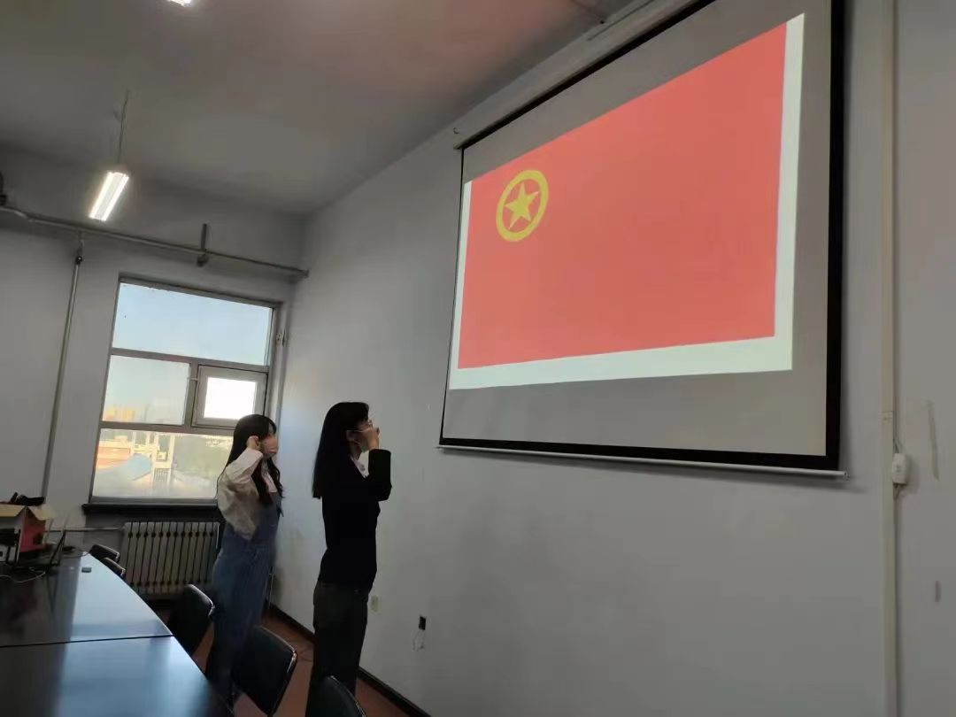 活动第二项,由王馨莹老师为新团员佩戴团徽,孟庆佳同学带领新团员在团旗下宣誓,新老团员重温入团誓词。接着,闵诗尧老师做总结发言,他强调,新团员要珍惜入团机会,勿忘初心,履行团员应尽的义务,合理行使团员的权利,在学习工作生活中能够做到砥砺前行、脚踏实地、求真务实,努力成为可堪大用、能担重任的栋梁之才。最后,全体起立合唱共青团团歌《光荣啊,中国共青团》。
