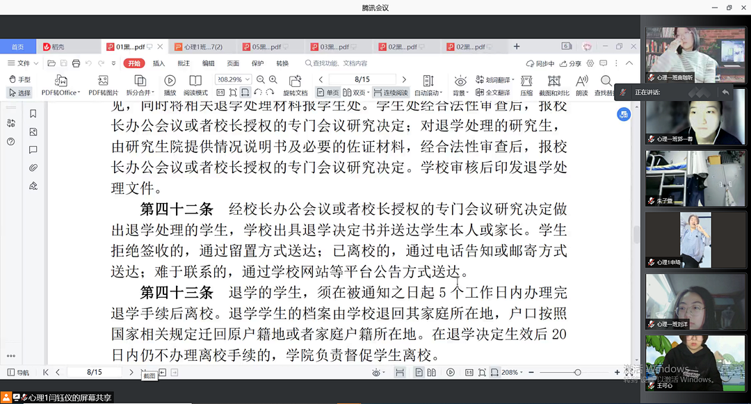 为了进一步帮助2021级新生更加科学地规划大学生活,明确学习目的并树立奋斗目标,2021年11月15日18时30分教育科学研究院于腾讯会议平台召开第二次班会,班会由2021级各班班长主持,各班班长、生活委员、学习委员主讲。本次班会共分为三个部分,分别为集体学习《黑龙江大学学生管理规定》、强调安全教育问题、总结并严肃纪律问题。