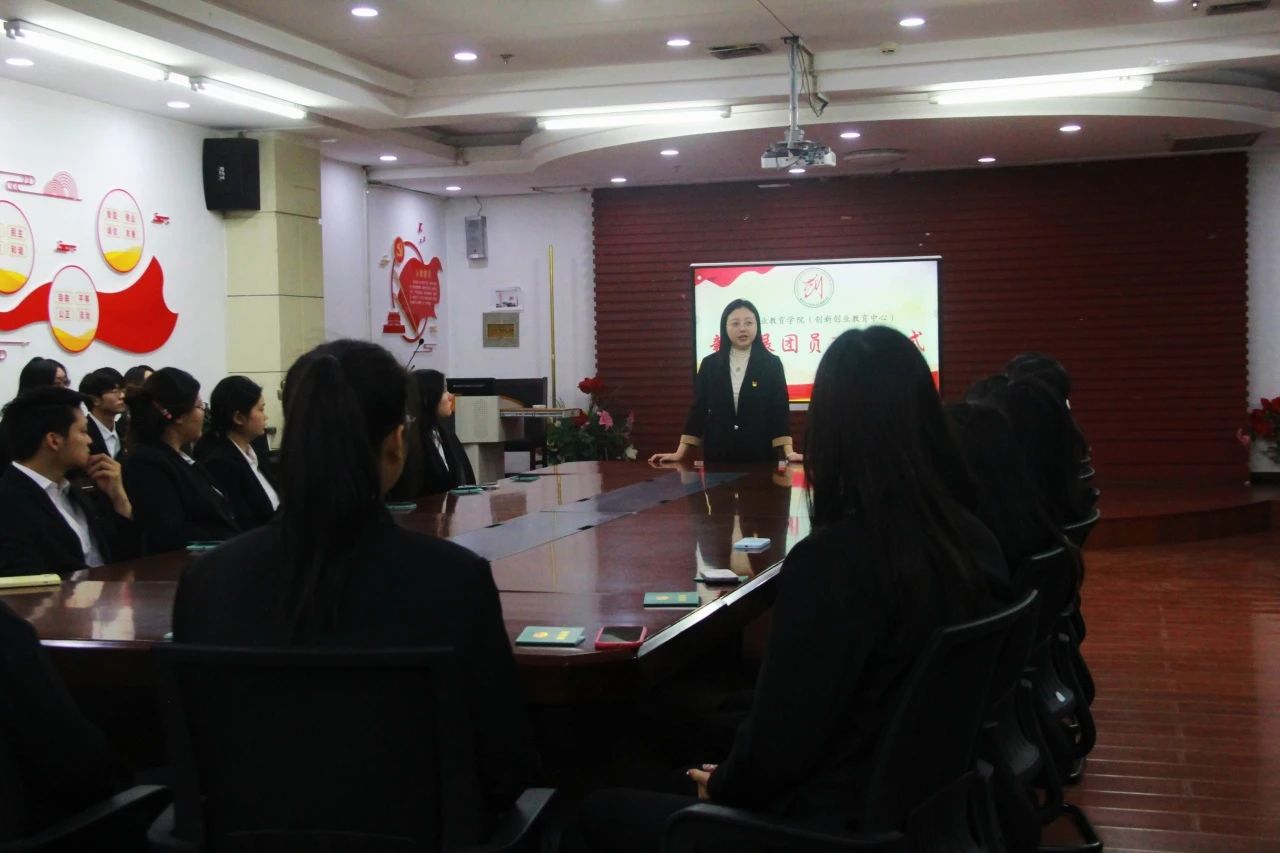 学院团委副书记宋美琪向全体新团员表示热烈祝贺,并提出希望和要求:一要坚定理想信念,以理论学习滋养初心,深入学习党的创新理论,从百年团史中汲取精神力量,补足精神之“钙”,在思想淬炼中把稳青春航向。二要锤炼实干本领,在实践中磨砺担当品格,主动参与志愿服务、社会实践与学术创新,将专业知识融入时代需求,在攻坚克难中增长才干、练就过硬本领。三要严守团内纪律,永葆先锋本色,时刻以优秀团员标准严格要求自己,规范言行举止,传承优良作风,在集体中发挥示范作用,以青春之我、奋斗之我为团组织发展贡献力量。
