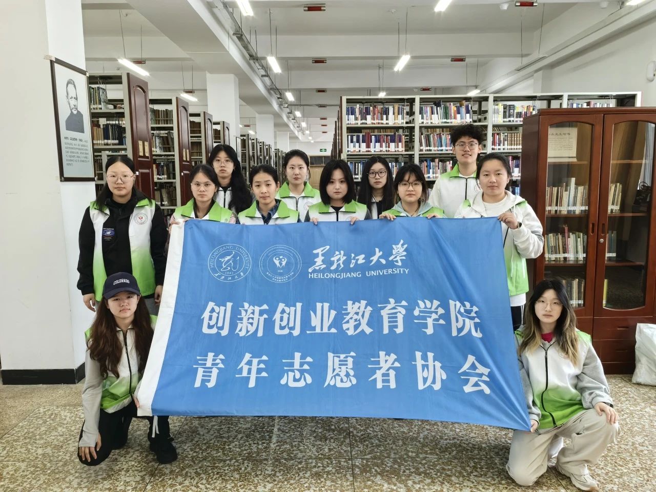 青年志愿者协会于5月21日14时走进黑龙江大学图书馆,开展图书整理志愿活动。