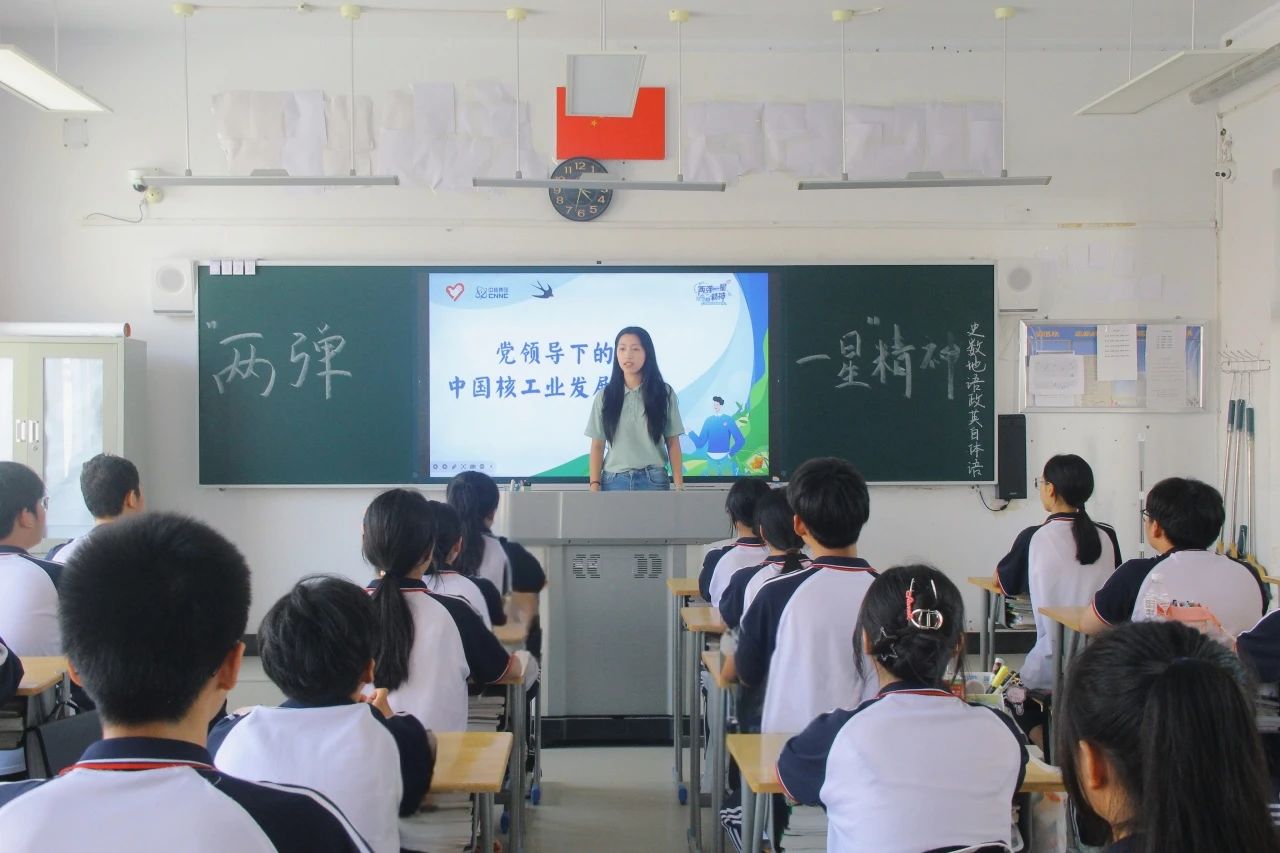 “星火燎原·五池乡行”服务队于7月11日下午走进五大连池市高级中学开展“两弹一星”精神志愿宣讲活动。此次活动以青年视角解码历史,用鲜活载体活化精神,为五大连池市高级中学的师生们带来一场兼具历史厚度与时代温度的精神洗礼。
