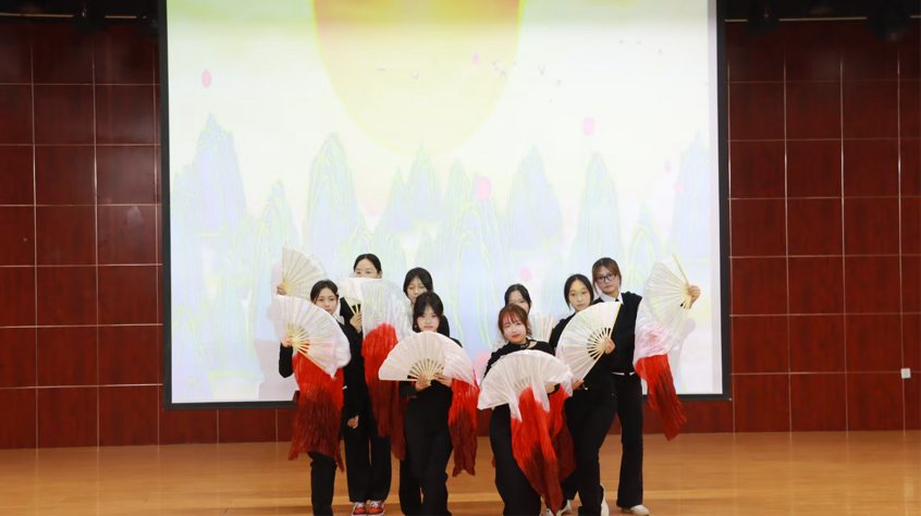 开场舞《万疆》旋律响起,舞者们手持红扇登场,提腕展扇如铺展山河,旋身收扇暗藏奋进劲道,红扇起落间既有对岁月静好的珍惜,也藏着青年对生活的热忱。利落舞步与悠扬旋律共振,将向上力量与青春朝气融入肢体语言,用教育学子的独特方式传递赤子之心,为团日活动拉开了序幕。