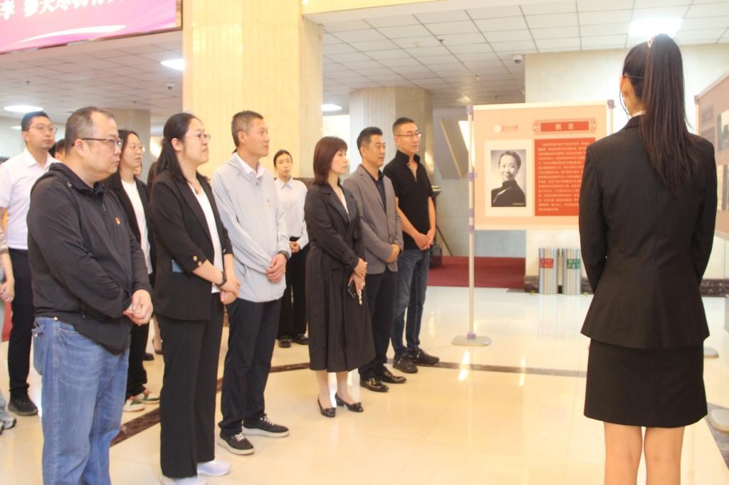 全体教师党员来到主楼一楼大厅参观“抗大之光 星耀龙江”黑龙江大学党性教育研学基地——赵洵生平图片展,深情回顾她为党的教育事业倾情奉献的一生,深入学习她宝贵的办学理念和教育思想。