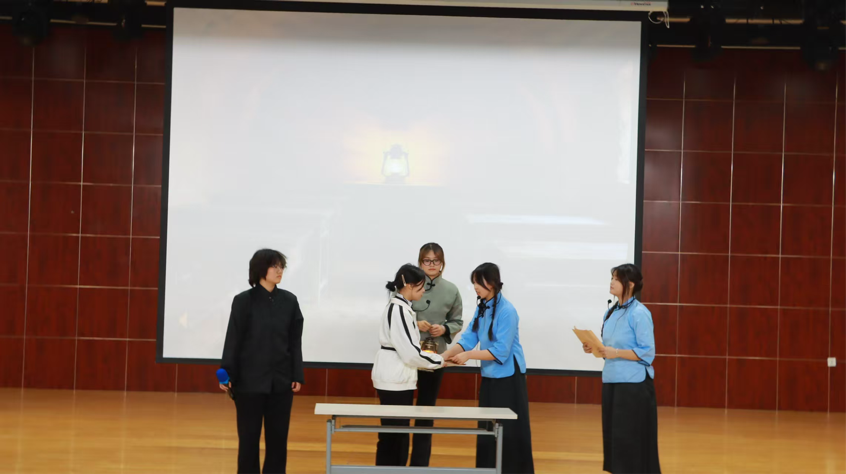 情景剧《笔尖上的答卷》以“时空对话”为脉络,串联起1941年烽火课堂与当代青年生活。舞台上,民国学子以笔为刃,在炮火中刻写传单、坚守课堂,用“以身许国”的信念书写救国答卷,当代团员则在前辈精神感召下,褪去迷茫、坚定方向,以“以学护国”的担当回应时代使命。整场演绎将红色基因与青春担当深度融合,推动爱国情怀与责任意识入脑入心。